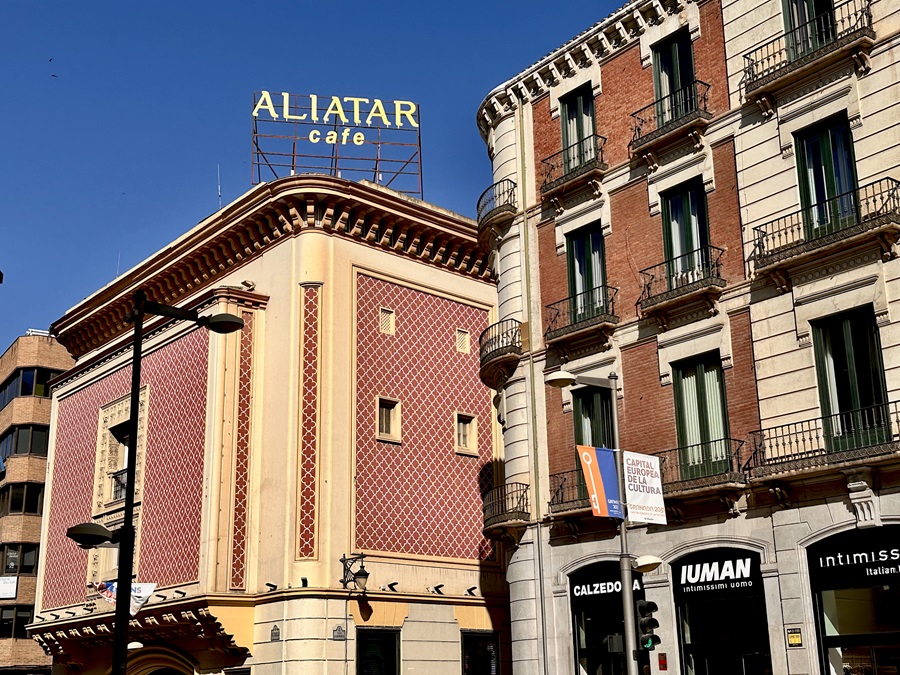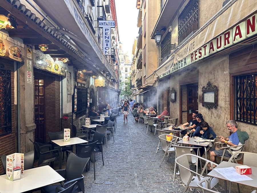 Refreshed and ready to start the evening we returned out shortly after 7pm. We walked the same route back into the centre until we came to the street called Reyes Catolicos. Despite being a wide road the city had installed awnings to shade much of the first section. Although I'm not sure what difference it made as we saw a temperature of 42C being displayed on one of those digital thermometers / clocks.