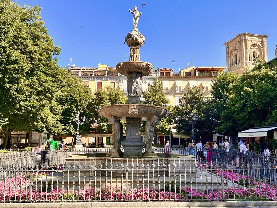 We found ourselves in Plaza de Bib-Rambla, a pretty square lined with cafes and restaurants, and a fine fountain in its centre. Although the Fuente de los Gigantones water wasn't flowing this morning. The excertion of our short walk was enough for us to justify sitting down at a cafe in the corner. It was too early for a beer and we were still full from breakfast, so we only had a drink. The freshly squeezed orange juice was perfectly refreshing and a great idea.