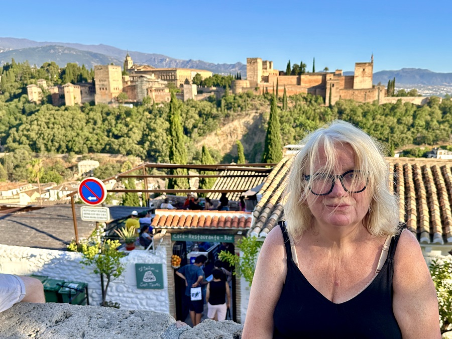 Eventually, after a few twists and turns we reached Iglesia de San Nicolas, but we weren't here for the church. The small square to the side had the best view of the Alhambra in the whole city. It was breathtaking, quite literally. However, Julie's grumpiness dissipated as she conceded that it was all worth it.