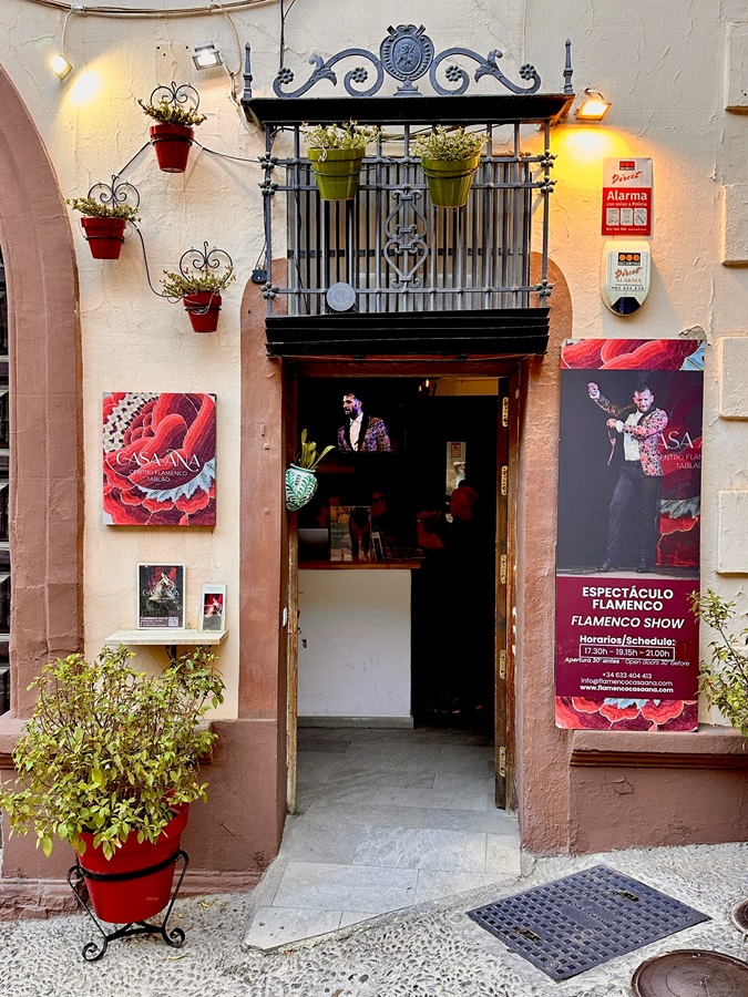 We had tickets for a flamenco performance. The most popular flamenco venues were up in the cave dwellings of the Sacromonte district, a half hour taxi ride away. We decided to keep it as close as possible and found Casa Ana, literally just around the corner from where we were sat.