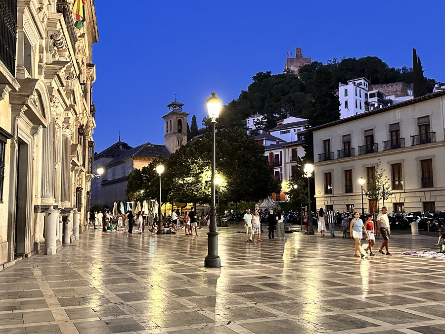 We moved on to the adjacent Plaza Nueva stopping a fountain to cool down in its splashing water. It was still lovely and warm despite the late hour.