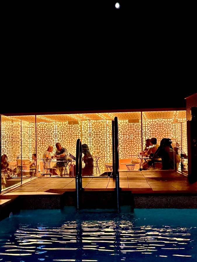 Back to the hotel we decided to have a nightcap at the rooftop bar. It was surprisingly busy with only a tall table free for us. Julie dislikes stools with a passion but she perched herself on one. Our drinks arrived; without a tapas dish. We were actually disappointed!