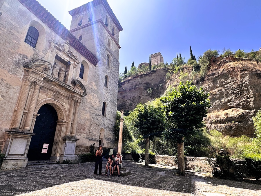 The street and the river then parted company as we came to the Church of San Pedro and San Pablo. Julie noticed the tower of the Alhambra on top of the red stone Sabika hill. "Do we have to climb up there?" she asked with dread in her voice.