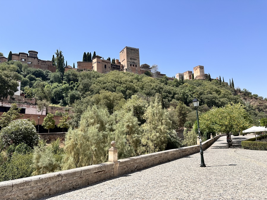 We walked towards the Generalife palace admiring the view of the Albacin quarter. Julie could tell I was itching to get into the Alhambra proper so we turned around and walked back the way we came, crossing over the bridge we walked under earlier.