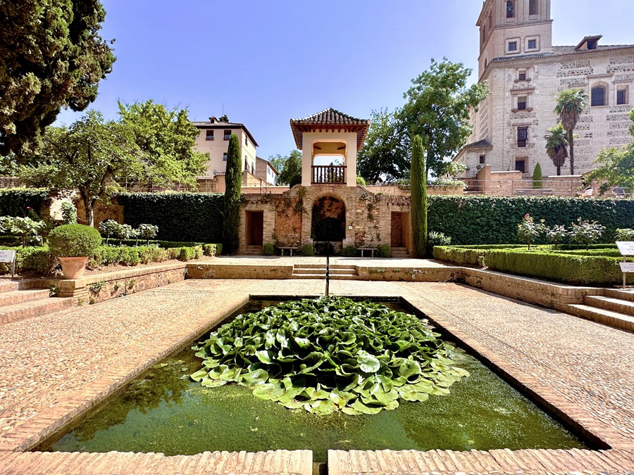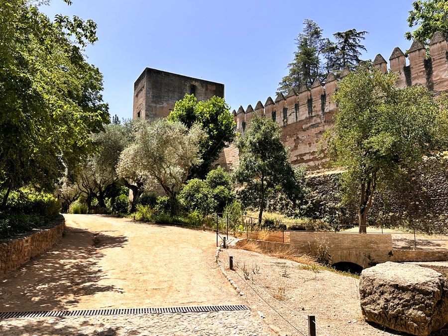 I soon left the tower and rejoined her, we then continued along the prescribed route, reaching a garden area. We took advantage of the shade for a few minutes as we planned our next place of interest to visit. We still had almost another two hours before our time-allocated ticketed entry to the Nasrid palace.