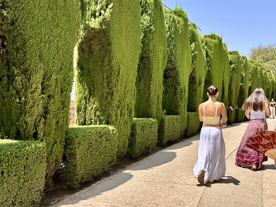 From the patio there was a fabulous view of the Generalife palace across the divide and in the foreground busy gardeners tended to the hedges.