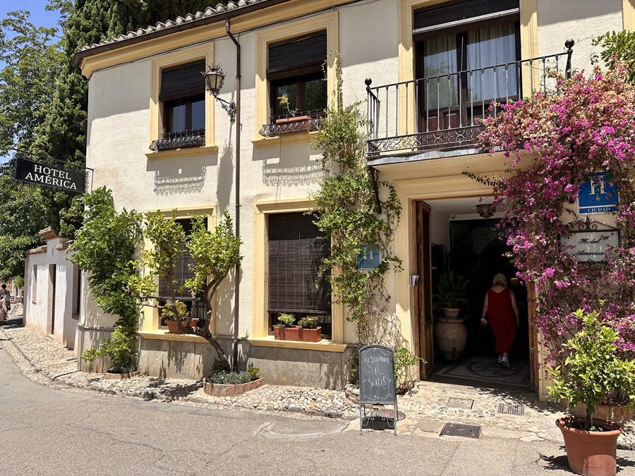 After lunch we went to have a look at the Convento de San Francisco. The path through its manicured garden was an attractive black and white mosaic of pebbles. We were surprised when we walked inside into a lovely smelling air-conditioned reception to see it had been converted into a luxury hotel, Parador del Granada. The staff smiled at us. It must happen so often, inquisitive tourists discovering it was a hotel not a monastery. It was of course still a historical 14th century monastery but access to the courtyard was for hotel guests only, so we left.