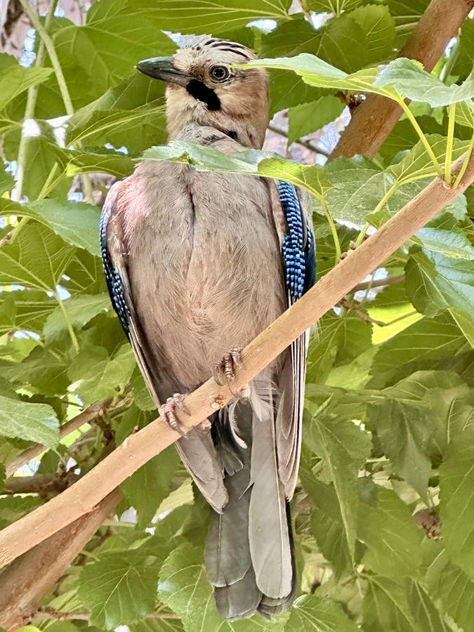 Julie brought out her cross-stitch and I sat there lost in my own thoughts. It was a very relaxing environment. We were briefly entertained by a visitor who sat on a branch above our heads. It was a Jay bird, from the same family as the Magpie. It had this unusal irridecent blue spots on a sash of black on its wings. Otherwise it was a very beige bird. It sat there, looking at us, looking at it. We left the terrace and walk back to the small square, then continued down the hill. There were a few souvenir shops but we continued until we reached another place of interest.