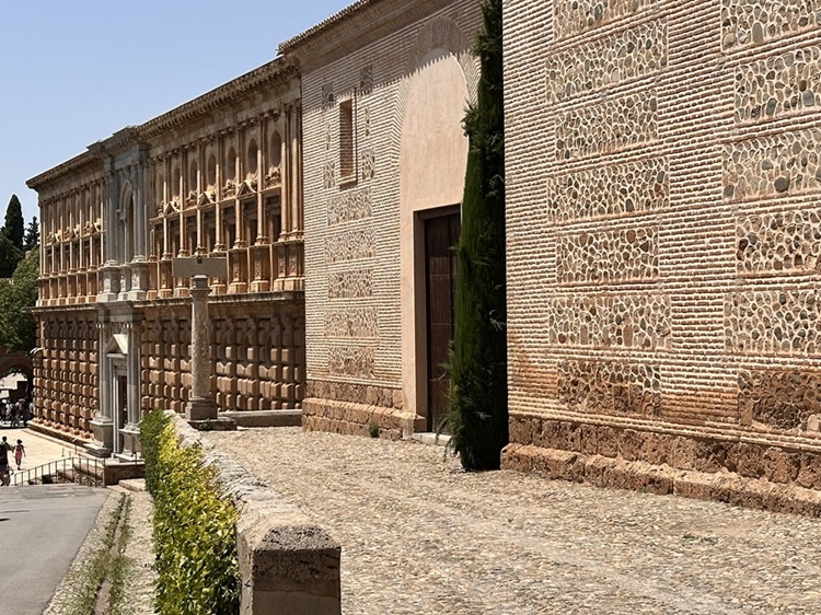 We left the museum through an exit that dumped us outside at the back of the Palacio de Carlos V. It took a while for us to get our bearings, although there was only one way to go. So we walked back to the front, stopping briefly to admire the incredible blocks of stone that built the palace. Next up on our itinerary was the Alcazaba fort, the most photographed part of the Alhambra because it's what you see the most from the city below.