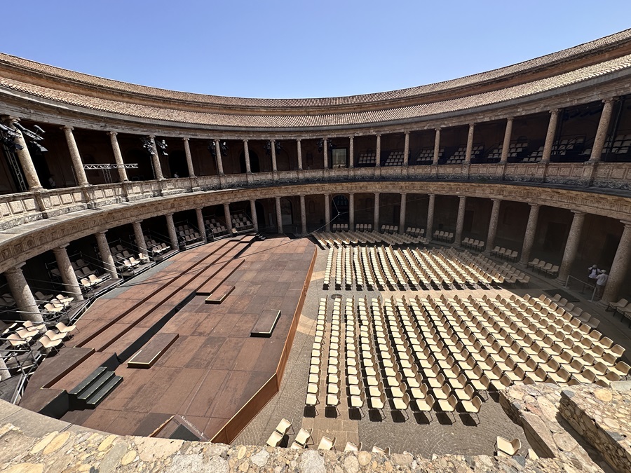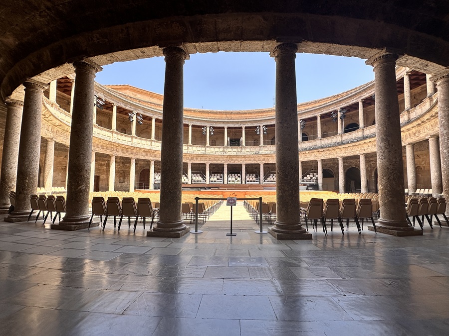 We walked inside and were surprised to see a circular courtyard made with 32 doric columns. It was being used as a concert venue. What a fabulous place to see a performance. Sadly we couldn't find anything on during our time in Granda.