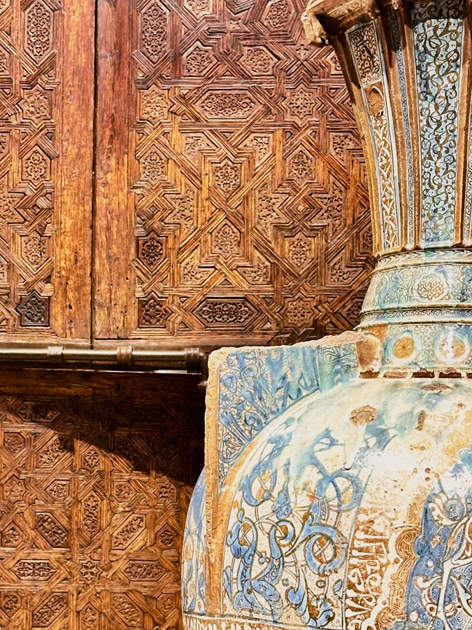 Above us, 18 metres up, was a mesmerising domed ceiling made from over 8000 individual pieces of cedar wood. The painted mosaic design created the effect of the starry night sky. With my attention captivated by the ceiling, I almost tripped over a section of the floor cordoned off to protect the original 15th century glazed ceramic tiles. Thankfully I had Julie to stop me.