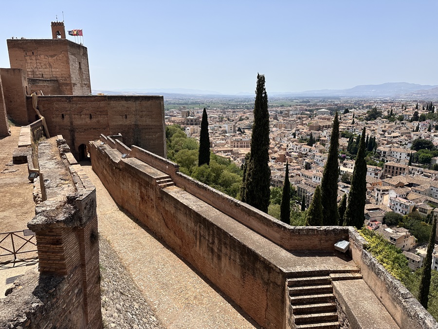 We returned to the Alcazaba and strolled right in. This was the oldest surviving part of the Alhambra, built in 1238 by the founder of the Nasrid dynasty, Ibn al-Ahmar aka Muhammad I. Having gained control of Granada he wanted to keep it and it was from this lofty position he controlled the Emirate. It really was an excellent view from the ramparts over the Albacin quarter. We could see it all, from the Church of San Pedro & San Pablo by the river Darro, all the way to the top of the hill and the Church of San Nicolas.