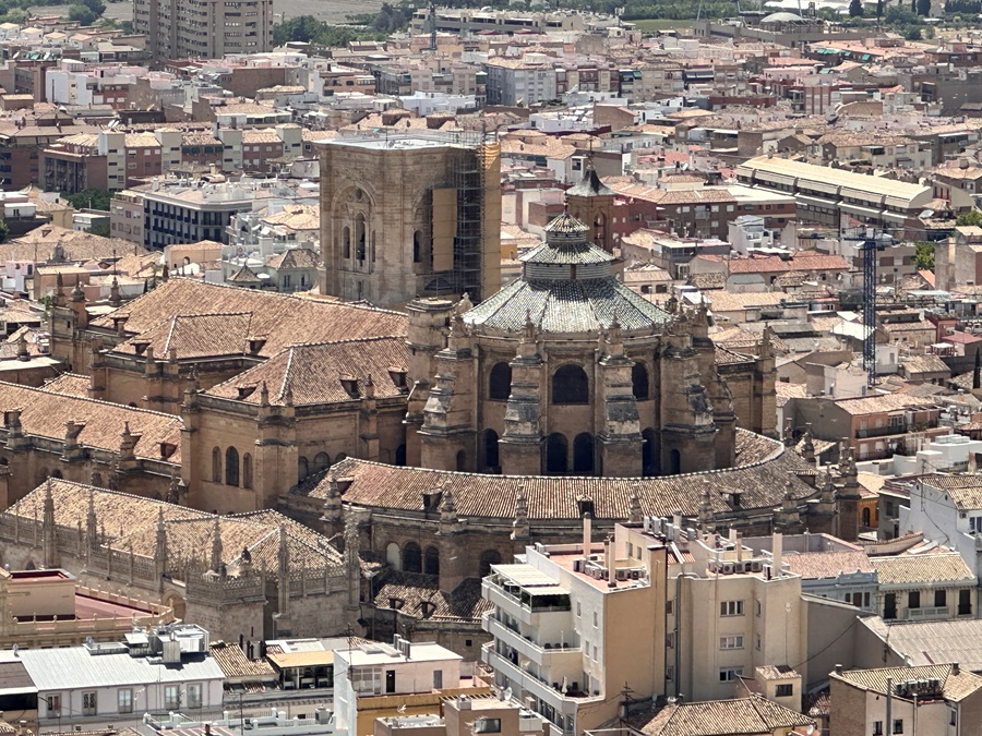 The portico also served as a wonderful viewing gallery looking North over the Albacin quarter. We walked inside stumbling across two young women who were taking it in turns photographing each other like they were on a professional photo shoot. We felt like we were intruding. So we didn't stay long. After looking the other way, admiring the view back over the pool and the terraced gardens, we retraced our steps, towards the Palace of Yusuf III, around the back of the Palace of Carlos V, passing the fron door of Church of Santa Maria. They were open so we popped inside for a look.