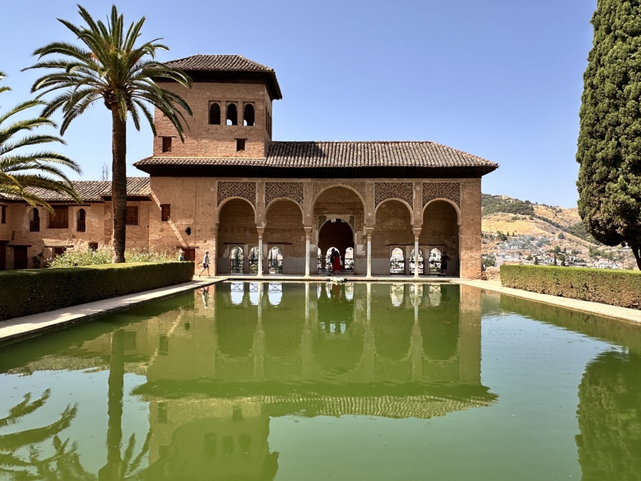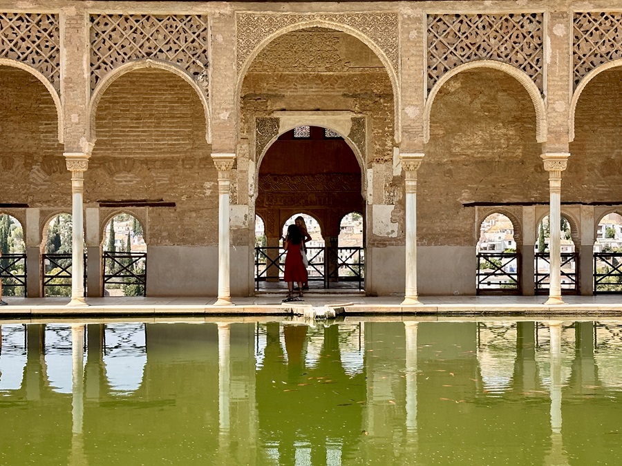 We followed the steps down reaching a much larger pool in front of the Palacio del Partal with its beautfiul portico. It was remarkable to think it was built around 1309 during the reign of Muhammad III making it the oldest palatial building in the Alhambra. However, it has undergone many renovations since.