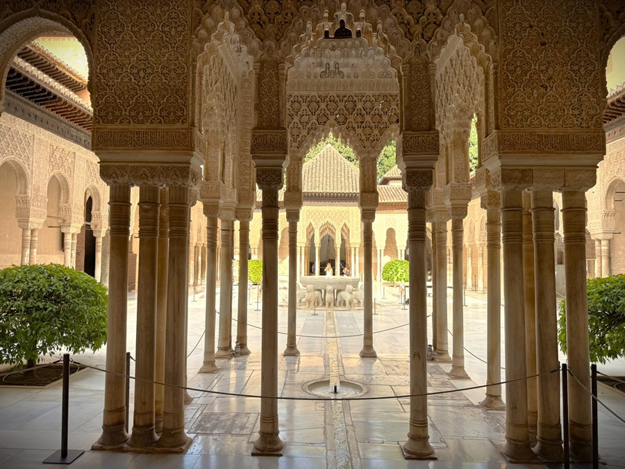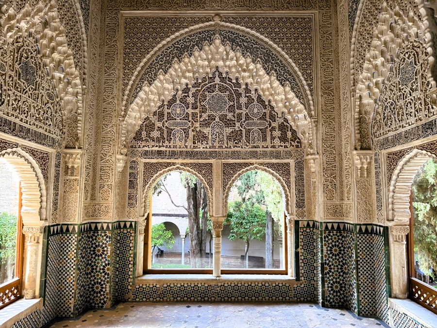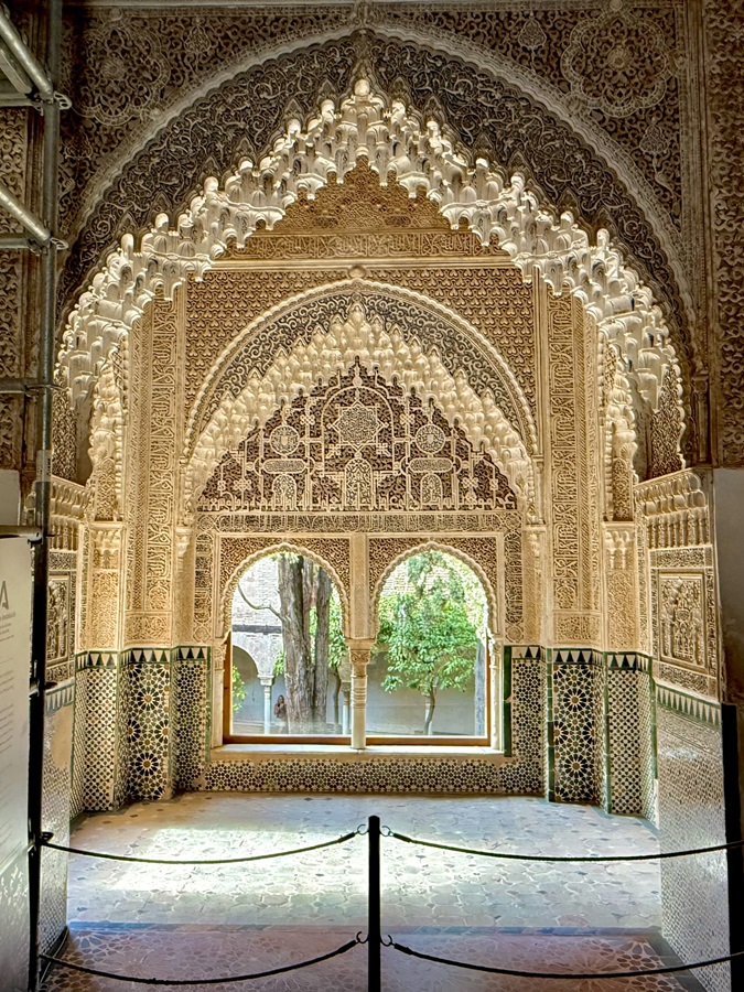 The four slender columns, for example, were quite a recent replacement. We walked closer to look at the intricate detail above the arches. The portico was certainly stunning, whetting our appetite for the Nasrid palaces later.