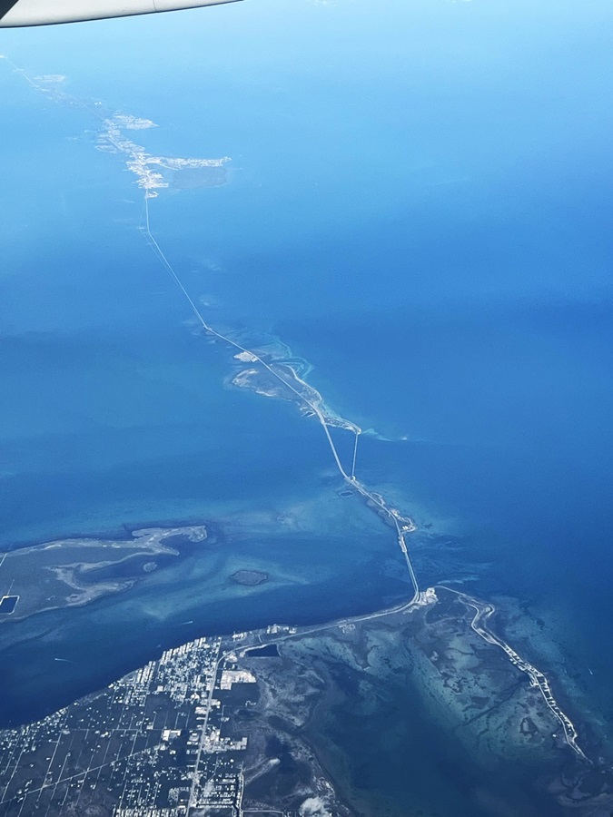We flew directly over Big Pine Key. I had never heard of it before but I had heard of the Seven Mile Bridge. It was fascinating to see how these small islands or cayes were linked by bridges all the way down to Key West.