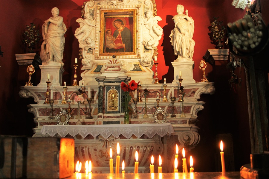 Another feature of the chapel was a row of over two and a half thousand silver votive tablets, offerings to the Virgin Mary from thankful sailors returning from safe travels. I had never see such a collection before.