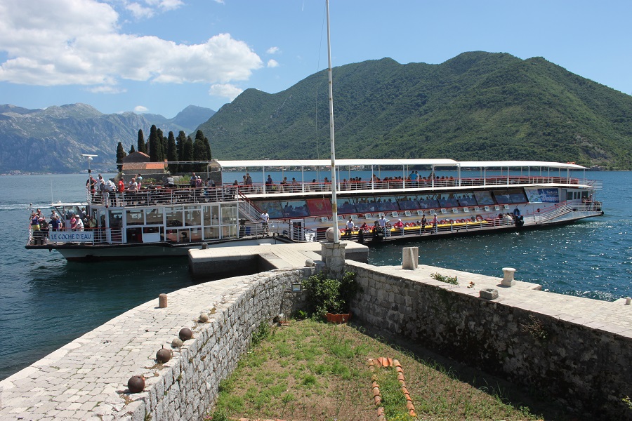 Pondering what to do next we decided to visit Crkva Gospa od Škrpjela, the church in the lake, the Church of Our Lady of the Rocks. Small boats were moored literally opposite our apertment, waiting to ferry people across to the small island. It cost us €5 each.