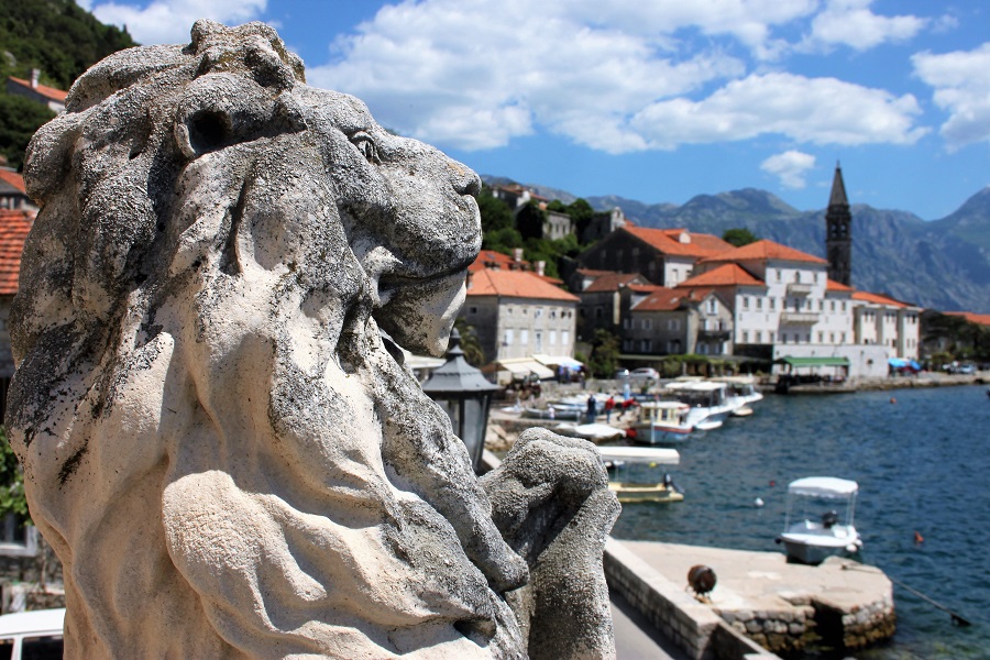We continued past our apartment, continuing past Armonia, the bar we stopped in last night, tucked by the side of Smekja Palace. We then came to the Church of St. Mark. There were figures of three saints on the roof. They were Saints Mark and Matthew, with apparently Christ in the center. It was built in 1706 and had a winged lion above the entrance, the mark of the Republic of Venice to whom Perast pledged its allegiance. It remained Venetian until the end of the 18th century when the empire collapsed, surrendering to Napolean and its lands divided up.