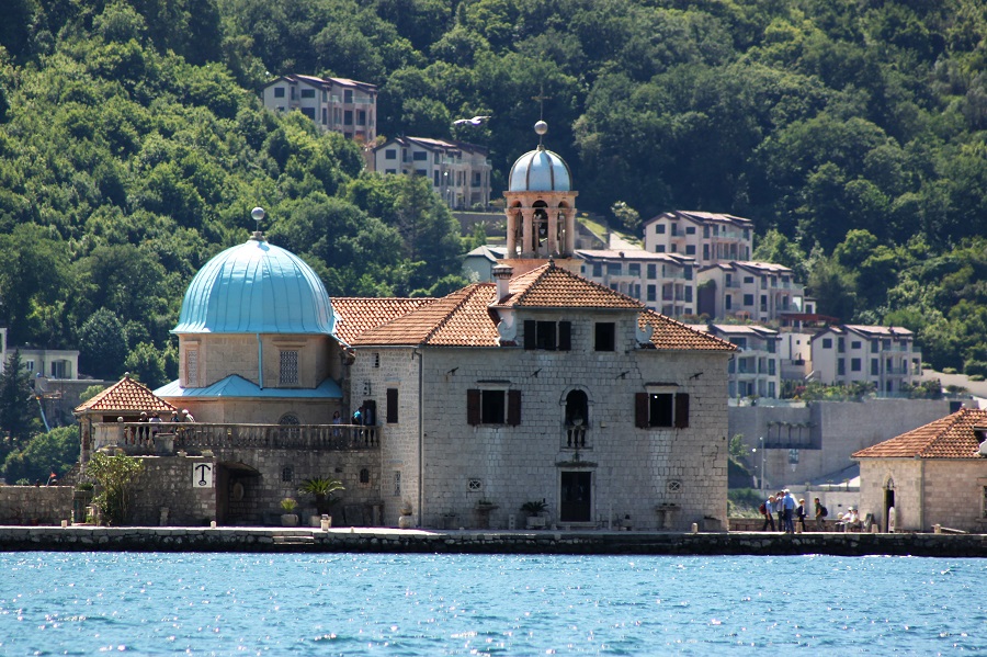 We looked across to the island of the Lady of Our Rocks. It appeared to be floating on the water with the land barely a metre above the lake. I'm sure they already have in place a contingency plan for climate change and rising sea levels. They're going to need it before long. Behind it, on the other side of the bay, was the village of Kostanjica and a large new development called Boka-Projekt, a resort village, bulit on the slopes high enough from the waters edge.