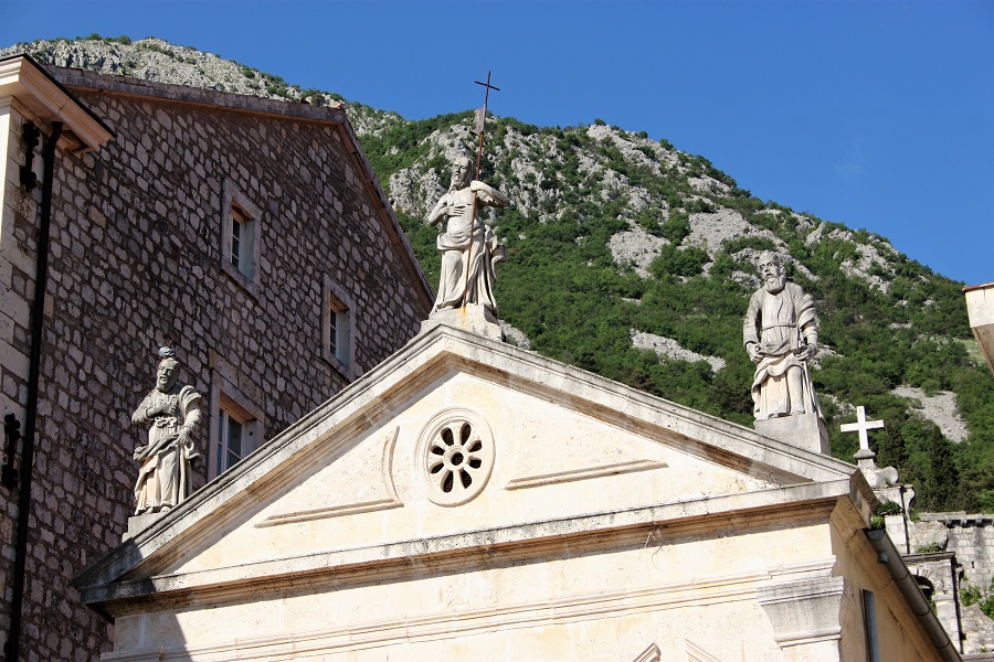 Next we walked back into the town, to look for an ATM. The path took us through a small shady park with the bust of a "National Hero" called Nikola Đurković. Just behind it was the small church of the Archangel St. Michael and the much larger orthodox church of the Saints Peter and Paul. The most predominant organised religion in Montenegro was the Serbian Orthodox Church, a branch of the Eastern Orthodox Church expanded during the Byzantine era.
