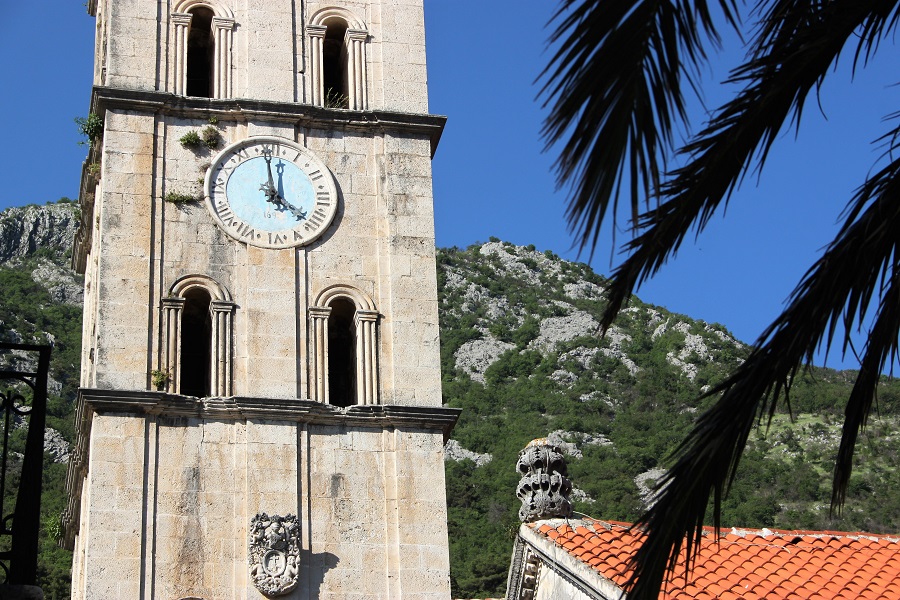 Approaching Perast from the water gave us a dramatic perpective on the village, with the mountains in the background and the bell tower of the church of St. Nicholas in the centre. The same view returning sailors would have seen for centuries.
