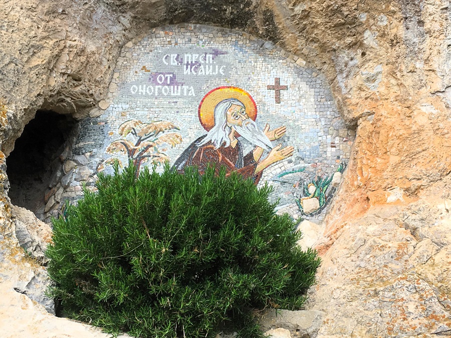 Just to the side of it was a cave cut into the rock. It was incredible atmospheric. I suppose it was a church. Inside there was a wooden cross mounted on the wall, and a tray of candles. What more do you need? A hermit known as Saint Isaiah had already established a church in a cave here when St. Basil of Ostrog arrived, around 1640 and chose this location for his monastic retreat.