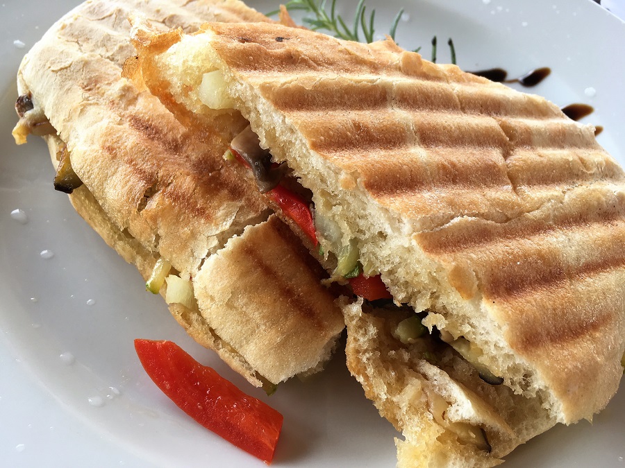 Today I opted for a vegeterijanski sendvič, a panini filled with roasted veg. Whilst Julie had her meat and two veg in the form of "white pork" and chips with a side of ajvar, a thick red pepper dip. "What's the difference between white pork and other pork?" Julie asked the waiter. "It's from the butt" he replied, without a hint of humour.
