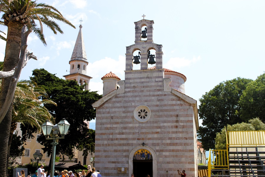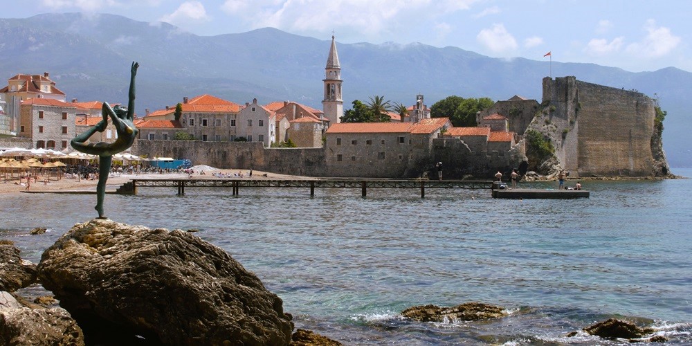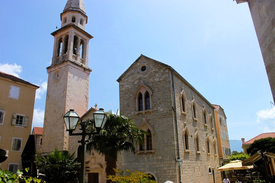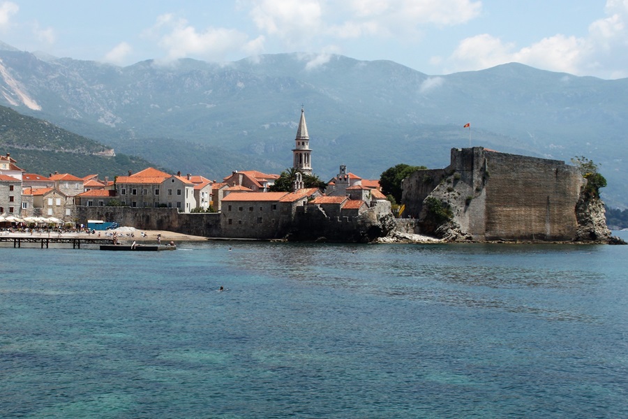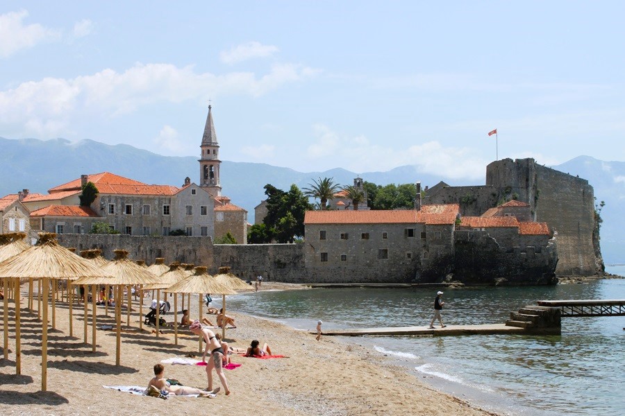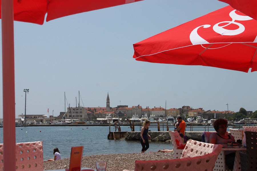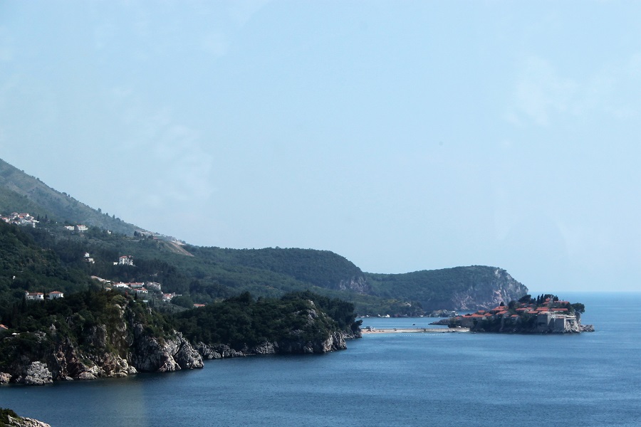 We woke up to the dreadful news that a suicide bomber had blown himself up in the foyer of an Ariana Grande concert in the Manchester Arena, at the moment people were leaving the venue. Nineteen young people had been killed (which sadly rose to 22) half of which were under twenty, with the youngest being an eight year old girl. Stunned into silence we began our day on auto-pilot, with breakfast on the balcony. We couldn't spend another day doing nothing, so for today we planned an excursion to the nearby city of Budva. Not wanting to move the car we decided to catch the bus. Yesterday we noticed people catching a small shuttle bus from outside restaurant Famelja Kentera around 10am so we aimed for that. With only a €50 note in my pocket we had a coffee at the restaurant, so we could break into the cash and have some small change for the bus driver. Once we finished, and stepped out into the road, the bus was coming down the hill. I hailed it down because I don't think we were at an official bus stop. Thankfully things were still done old school here and he pulled over. It cost us €1.50 each one-way to Budva. The bus left Sveti Stefan through a park called Miločer. Somewhere deep in the park was a villa with a private beach which was also part of the exclusive Aman hotel group. We travelled along the coast, through Pržno, with its pretty bay, then passing Kamenovo beach. The area increasingly became more built up with the high-rise hotels of the "Budva Riviera" as we drove through Bečići before reaching Budva.