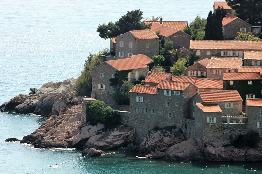 We walked back to the bus stop with perfect timing. The bus for Sveti Steffan was parked up, and seconds after we boarded, we set off. In no time we could see the small island resort in the distance. It made us realise how close Budva was. The bus followed the same route back, pulling into the town of Pržno. I tried to catch a glimpse of its pretty cove but our view was blocked by a very large casino resort. We soon got off at the Sveti Steffan bus stop. The driver refused to take us a little further up the hill to where we hailed the bus this morning. After picking up some supplies from the mini market we returned to our apartment. Stipo, the owner was in a chatty mood. We sat down and he brought out his bottle of rakija. "This is made at home" he proudly state. We talked for quite some time, touching on the troubled recent past in the Balkans. "It's still a problem in Bosnia" he said, which was insightful. The moonshine brandy was insanely strong. Julie couldn't drink her shot, so I helped her out. The topic of conversation moved on to the weather. He got his phone out to show us a picture of Sveti Stefan last December covered in snow. I got my phone and showed him a picture of my self-built brick pizza oven! He poured another shot. I could have stayed there all day but we made our excuses and went for a walk.