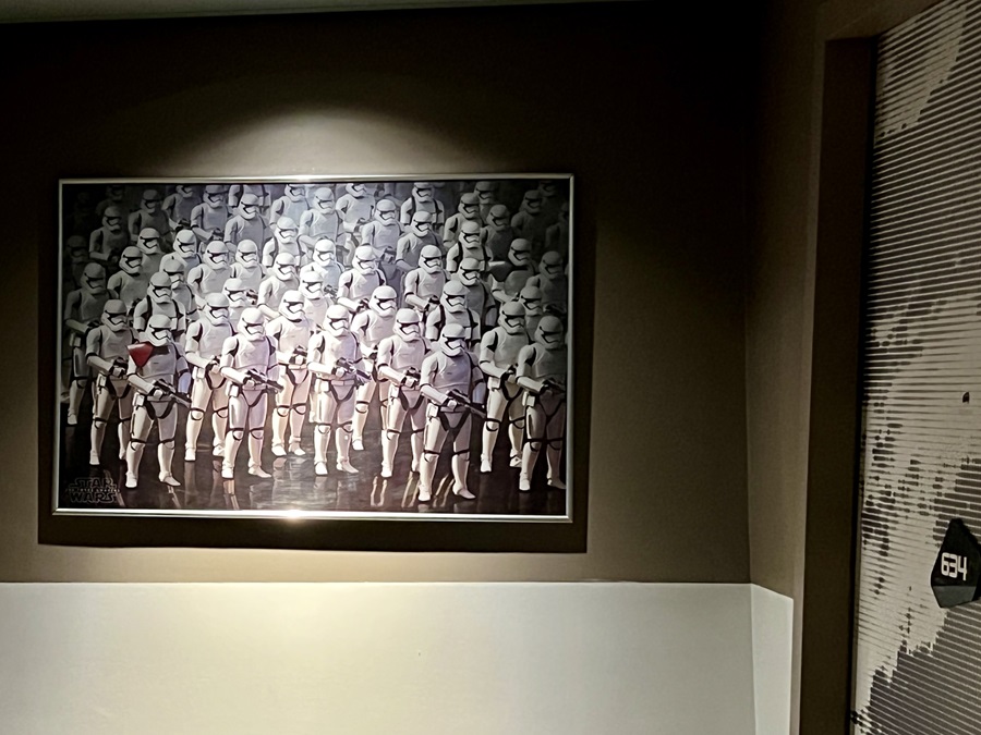 The sci-fi vibe continued inside the Ibis as it had this Star Wars theme everywhere you looked. Images of stormtroopers adorned the walls, all the signs were in a digital font and even the door to our room looked like it could swish open to the side.
