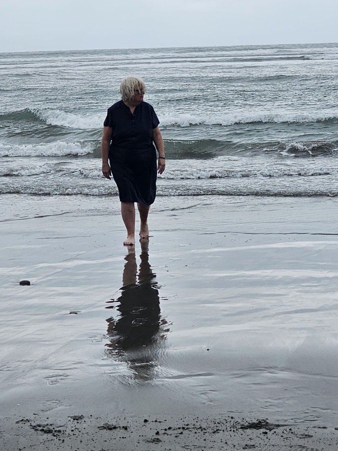 Julie and Sonya headed down to the water to dip their toes in the Atlantic. It turned out to be colder than they expected. We regrouped, sheltering behind a storage container, like stowaways in a storm. Then to make the moment even more surreal Julie decided to pop open the champagne to celebrate being alive. To be fair, battling the elements did make us feel alive. Every now and again I would raise my head above the precipice only to be slapped hard in the face.