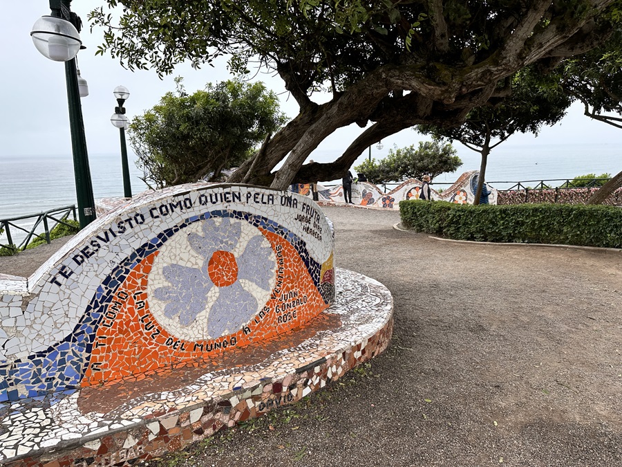 We survived the bridge and soon reached Parque del Amor. Although officially it's now known as Parque Alberto Andrade Carmona but the old name will always be more popular. The park was opened on St Valentine's Day in 1993. Apparently inspired by Gaudi's Parc Güell (in Barcelona) it had wavy curvy walls covered in mosaic with random poetic messages in both Spanish and Quechuan, the local indigenous language of Peru.