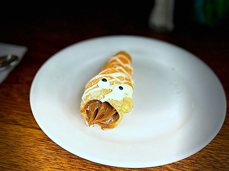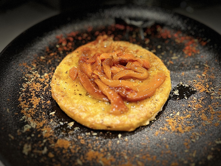 I ordered three side dishes. The first one was melted provolone cheese, cooked in a small skillet and turned out onto a plate, topped with griddled red pepper and seasoned with smoked paprika. It was simple and delicious.