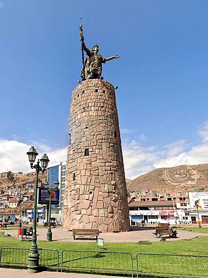 In the centre of a roundabout stood a monument to Inca Pachacutec, the 15th century Inca Emperor who ruled before the arrival of the Spanish, and regarded as the greatest of all the Inca emperors. He stood on a stone tower, with his back to us as we drove towards the city centre, which I thought was a bit odd, as if he was looking in the wrong direction.