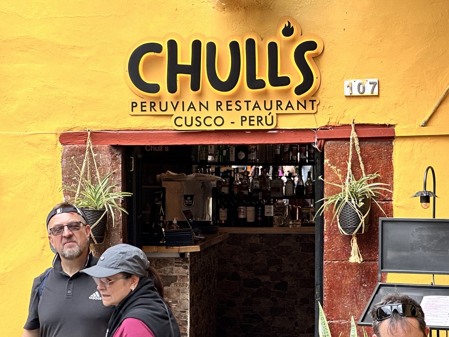 It was time for lunch and Ali Jei brought us to a restaurant called Chull's. It was next door to the local Intrepid office, hidden from view off an inner courtyard shared with another restaurant and a few shops. We sat inside and browsed the menu. It had several interesting choices for me and all of them were clearly marked with a green leaf as being suitable for vegetarians. They also had guinea pig and alpaca available for the carnivores but no one was brave enough to try some!
