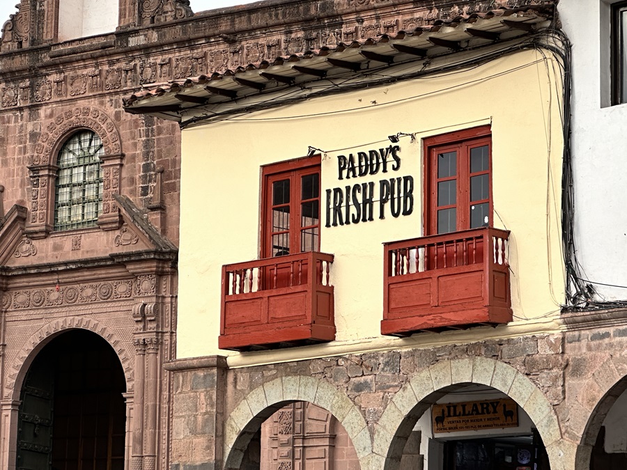 We were welcomed into the city by a sign spanning the road, crowned with a gold disk, the Sol de Echenique. It welcomed us in three languages, Spanish Bienvenido, Quechua Allin Hamuq and English. The Quechua language is an official language of Peru, and similar to Welsh, an indigenous language, oppressed by a colonial language but now finally getting some recognition. We were in the heartland of the Inca Empire and Cusco certainly had a different feel, in comparison to Lima.