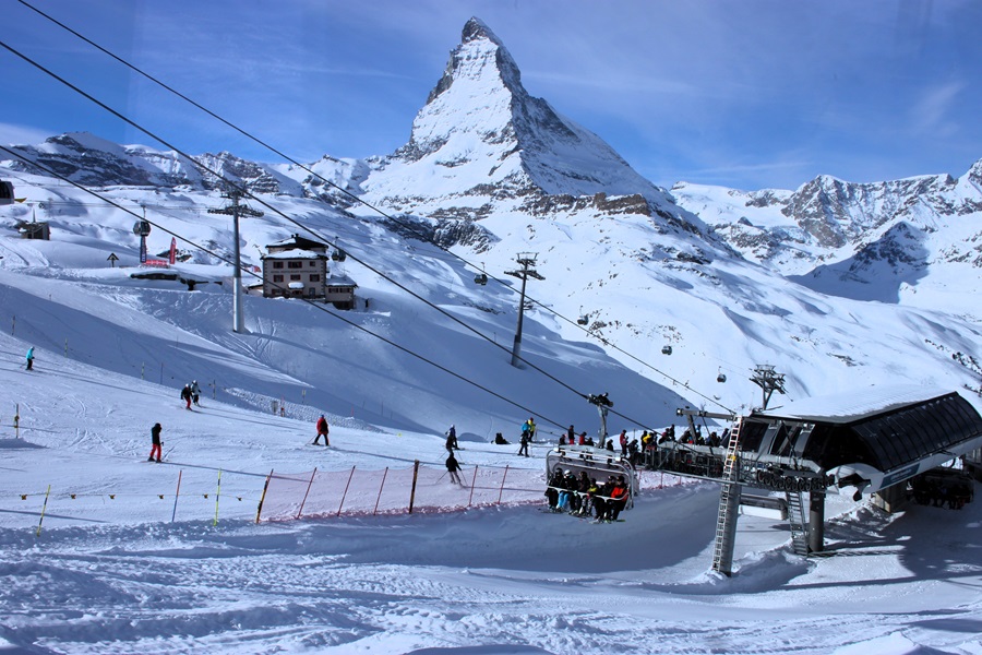 After a 40 minute ride we arrived at Gornergrat train station. Most passengers headed straight for the slopes but we just stood there in awe of our surroundings. Despite being busy with people there was a hush about the place. I think everyone was struck by the beauty of the scenery.