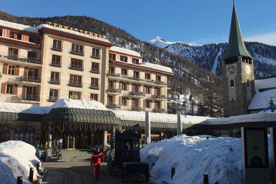 We walked past the 5 star Mont Cervin Palace hotel, then the Brown Cow Pub 5 star Grand Hotel Zermatterhof one of Zermatt's most iconic hotel. It's been welcoming guests to the Matterhorn since 1879. That was an impressive statistic. Its room rates were also impressive. I thought our Backstage Hotel was expensive but the Grand Hotel Zermatterhof was three times more expensive! A staggering amount of money per night. It boasts Royalty and filmstars amongst it's clientelle, that's because you would need the deep pockets of an oliagarch to stay there!
