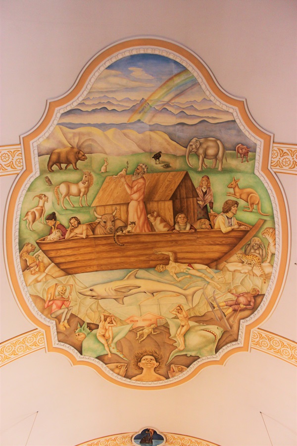 It was renovated in 1980 to celebrate the 700 year anniversary. There were a few modern quirks from this time that you wouldn't expect to see in a traditional church. There was a fresco of Noah's Ark with all kinds of animals, including Elephants and Kangaroos. Below it there was a shark but more unusually there was a man on his back wearing a pair skiis, and a person with their head, as a skull, in a box, like a television. Most peculiar. I'm not too sure what artist Paolo Parente was getting at?