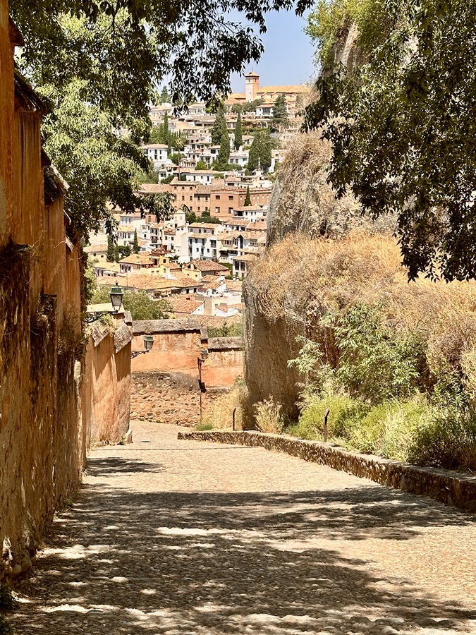 We crossed the river and began to walk up the slope. The path is known by a multitude of names. It is officially called Cuesta del Rey Chico, the slope of the Little King after Boabdil, a prince who rebelled to overthrow his Sultan father. He then went on to have the inauspicious honour of being the last sultan of the Nasrid dynasty, surrendering the city in 1492.