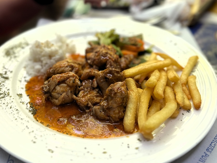 Julie ordered rabbit which was very advetnurous of her. It came stewed in a rich tomato sauce. She really enjoyed the flavours however most of the meat was on pieces of bone. She literrally had to put the whole chunk in her mouth, suck off the meat, then spit out the bone. Most unbecoming of a lady.