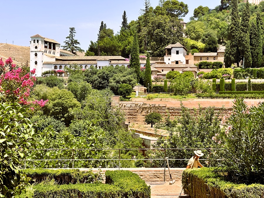 From the patio there was a fabulous view of the Generalife palace across the divide and in the foreground busy gardeners tended to the hedges.