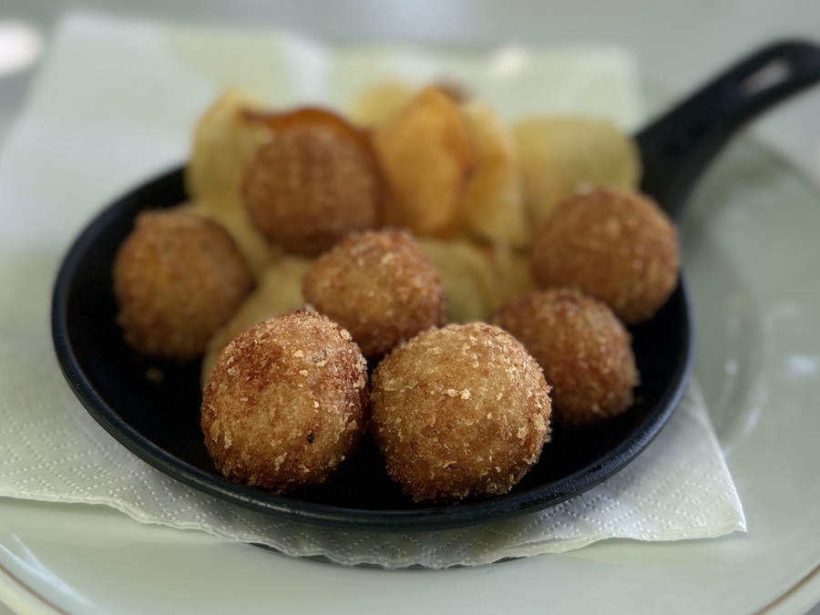 Having not eaten much substance for lunch Julie was still feeling hungry. We weren't expecting any free tapas here. How often is it the case the more luxurious the venue the less you get for free? So we ordered some croquettas. They arrived, 7 of them, smaller than a ping pong ball but very tasty.