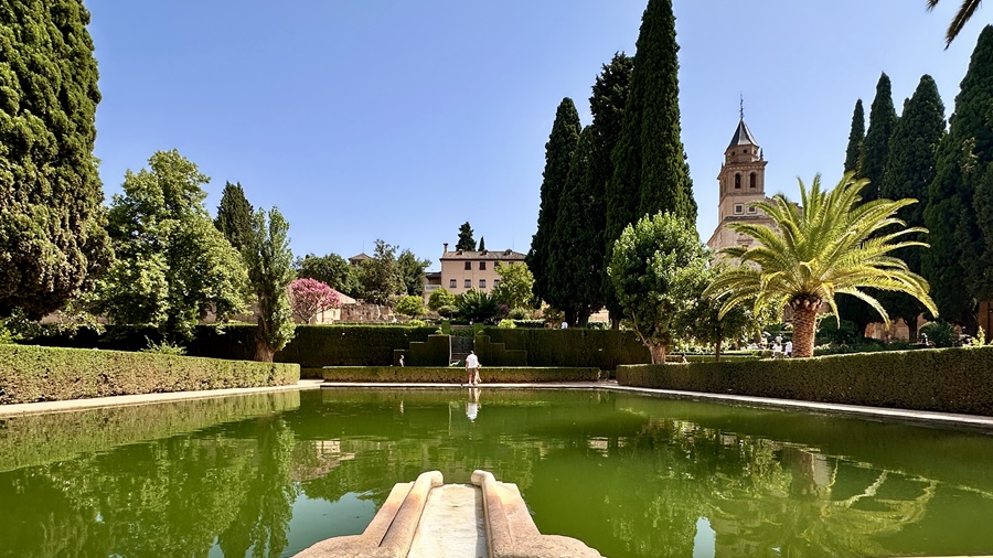 I soon left the tower and rejoined her, we then continued along the prescribed route, reaching a garden area. We took advantage of the shade for a few minutes as we planned our next place of interest to visit. We still had almost another two hours before our time-allocated ticketed entry to the Nasrid palace.