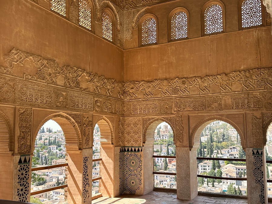 Before leaving the Patio de los Leones we returned to the fountain for a final look. We tore ourselves away, exiting through the Sala de dos Hermanas, the hall of the two sisters. Apparently if we had looked up we would have seen another exquisite dome covered in a mocàrabes design. Although in our defense, the dome may have even been hidden by scaffolding as there was some work taking place. Instead we were drawn to the warm glow of the Mirador de Lindaraja.