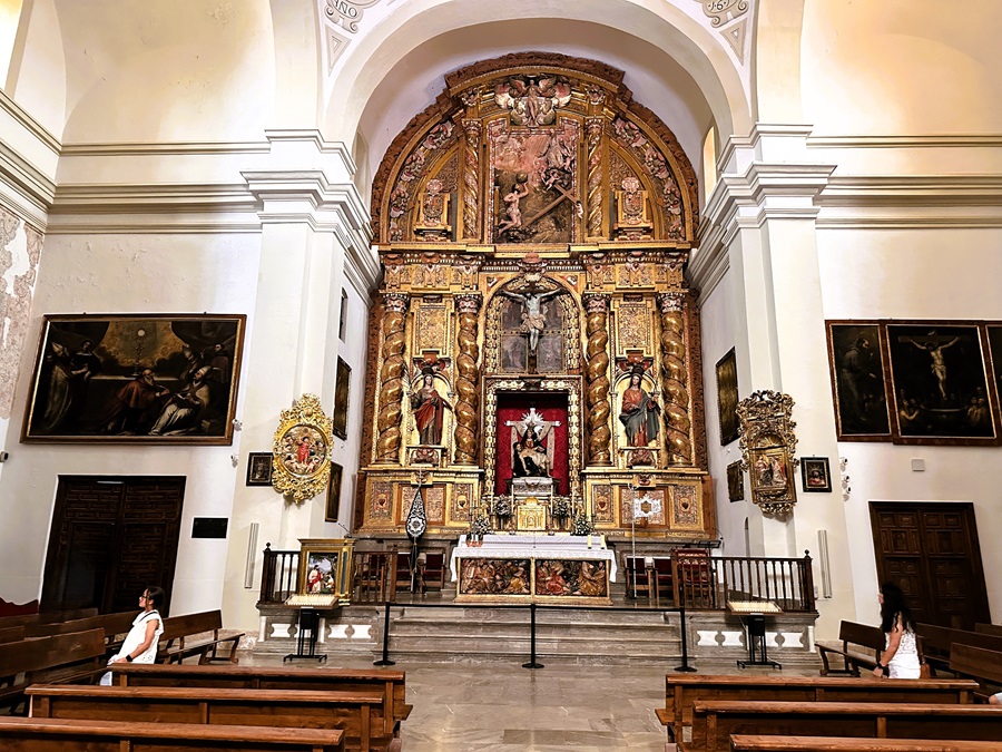 The portico also served as a wonderful viewing gallery looking North over the Albacin quarter. We walked inside stumbling across two young women who were taking it in turns photographing each other like they were on a professional photo shoot. We felt like we were intruding. So we didn't stay long. After looking the other way, admiring the view back over the pool and the terraced gardens, we retraced our steps, towards the Palace of Yusuf III, around the back of the Palace of Carlos V, passing the fron door of Church of Santa Maria. They were open so we popped inside for a look.