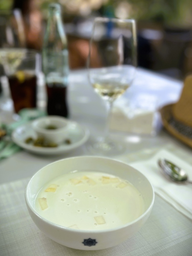 With still plenty of time on our hands we decided to head back to the terrace of the hotel for a drink and something else to eat. On the menu they had ajo blanco another traditional cold soup from Andalusia. This one was white and made from almonds, bread, garlic, vinegar and olive oil. It also had small pieces of melon floating on top. It was tasty but not as good as the salmorejo, which has to be my favourite.