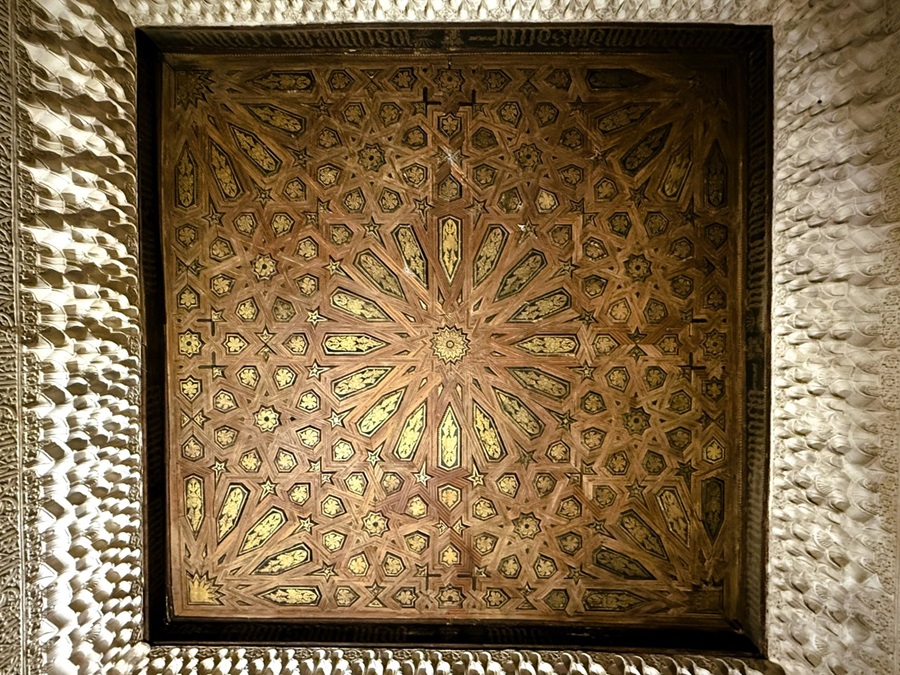Above us, 18 metres up, was a mesmerising domed ceiling made from over 8000 individual pieces of cedar wood. The painted mosaic design created the effect of the starry night sky. With my attention captivated by the ceiling, I almost tripped over a section of the floor cordoned off to protect the original 15th century glazed ceramic tiles. Thankfully I had Julie to stop me.