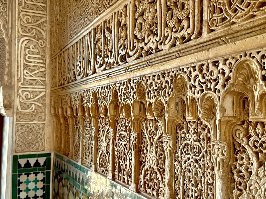 The four slender columns, for example, were quite a recent replacement. We walked closer to look at the intricate detail above the arches. The portico was certainly stunning, whetting our appetite for the Nasrid palaces later.